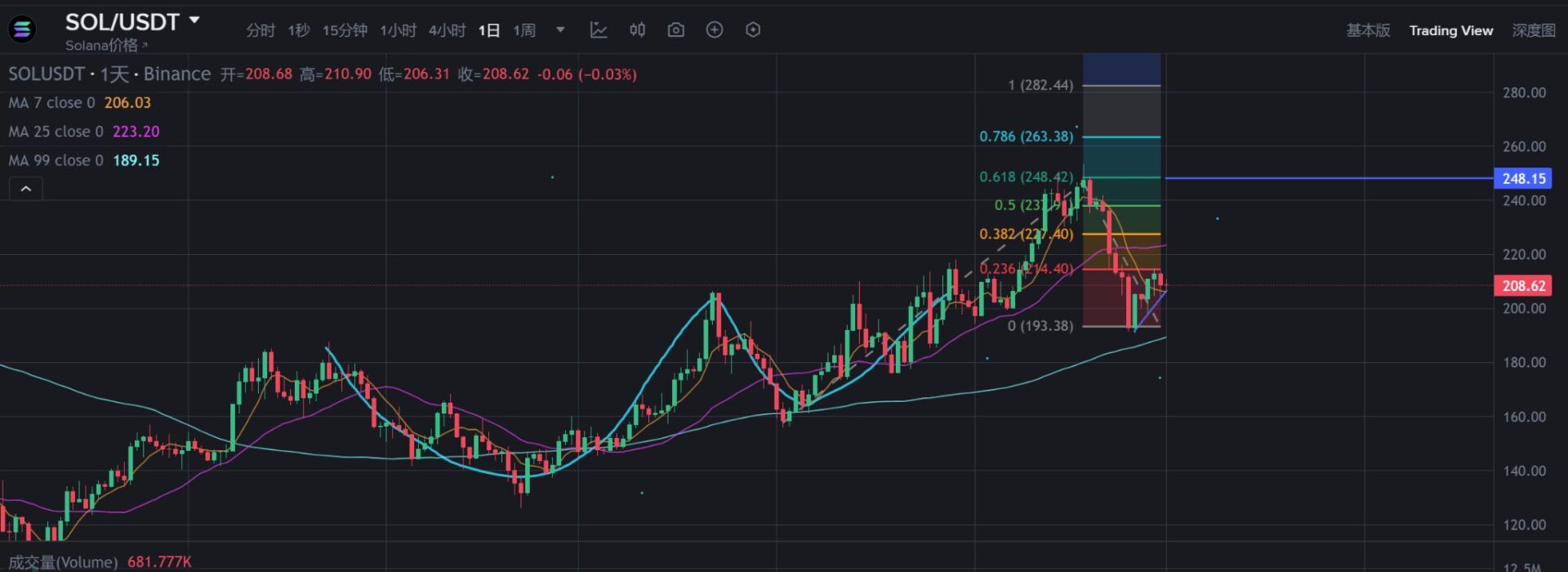 截至發稿時,SOL 已迅速反彈至 209 美元上方,成功收復週開盤價的中位數區間。 儘管政治不確定性引發初期拋售,但道瓊斯指數、標準普爾 500 指數和那斯達克指數當日均收漲,加密貨幣市場緊跟著股市腳步實現逆轉。這種韌性向市場傳遞了一個明確訊號:機構投資者並未因短期政治噪音而改變其長期布局。