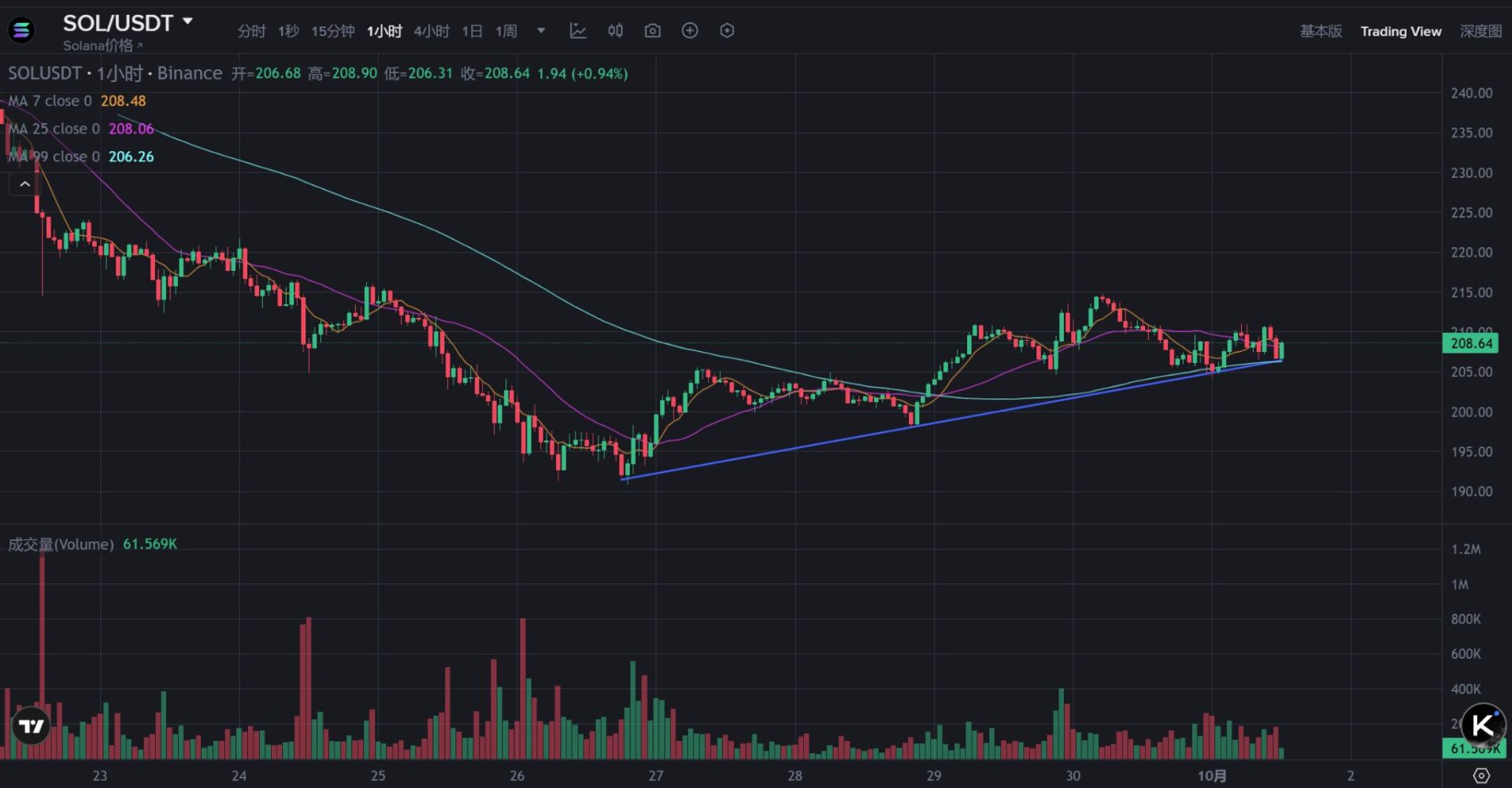 美國政府關門的黑天鵝再次煽動翅膀,10 月 1 日,SOL 價格突然急跌至 204 美元,後期槓桿零售多頭在劇烈波動中被清洗出局。