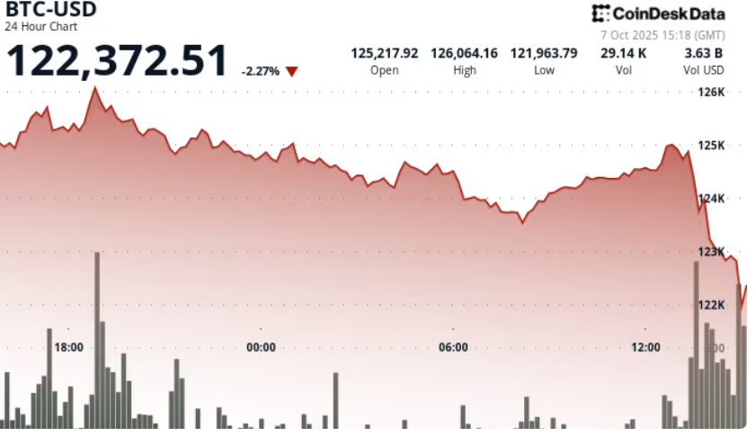 - 比特幣回落至 12.2 萬美元,從歷史高點下跌約 3%,同時,主要山寨幣如 XRP 、 DOGE 、 ADA 也下跌了 4% 至 5% 。