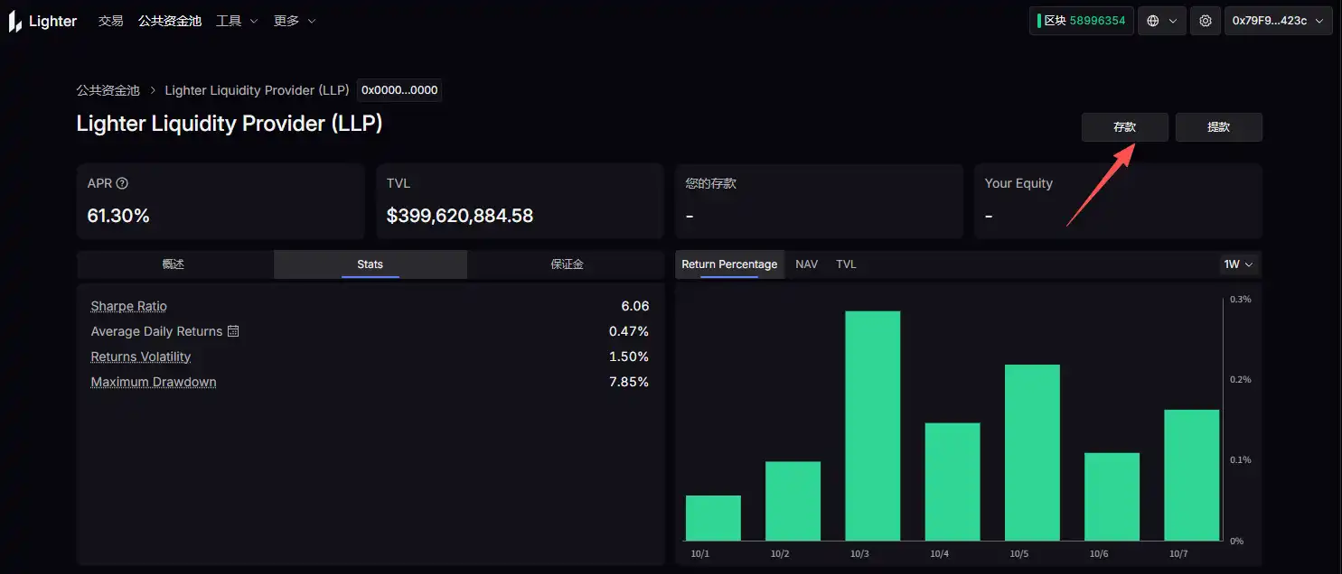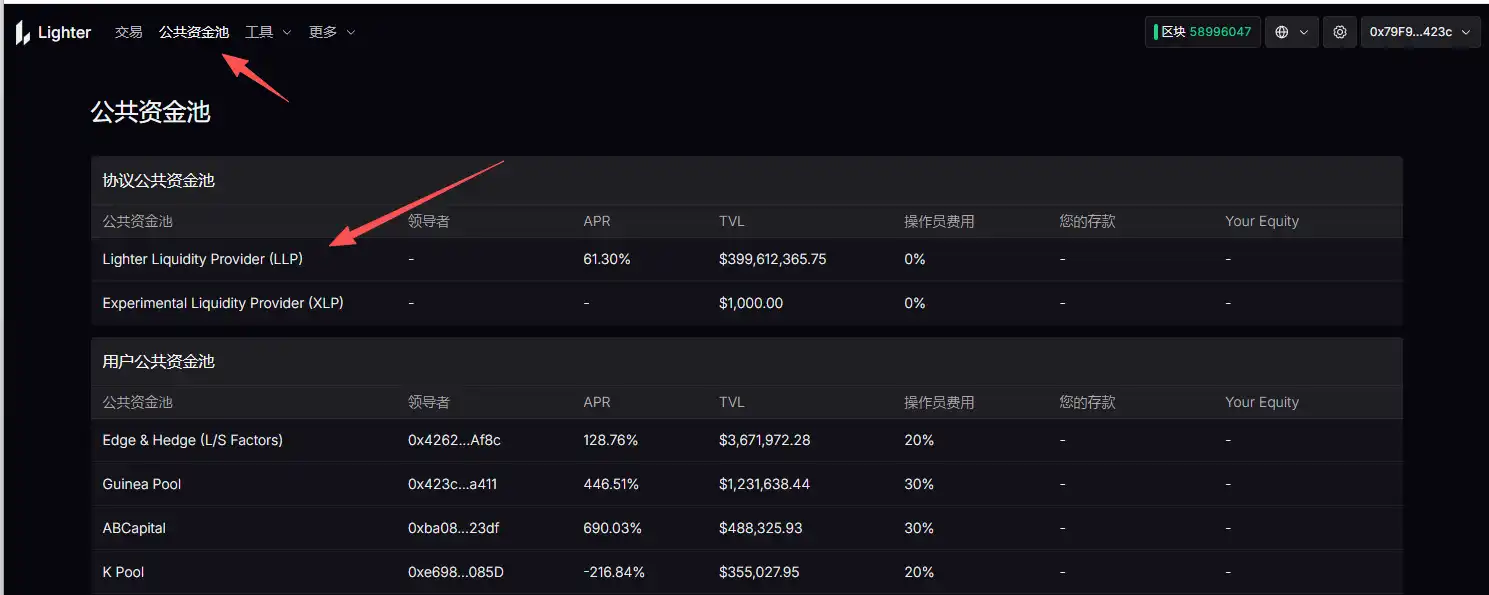STEP 2. 點選「公共資金池」後選擇 LLP,存入資金,即可開始交易賺積分。
