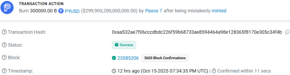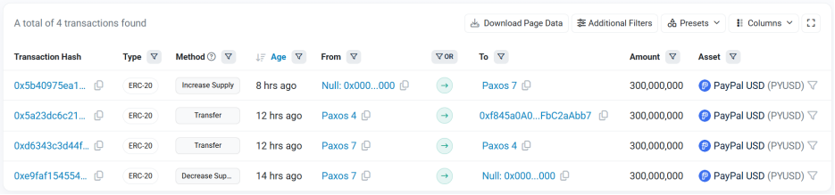 事件始於 Paxos 的一次內部操作,根據其在 Etherscan 上的交易記錄推斷,Paxos 原本應準備在不同錢包之間轉移 3 億 PYUSD,但卻意外將其銷毀了。
