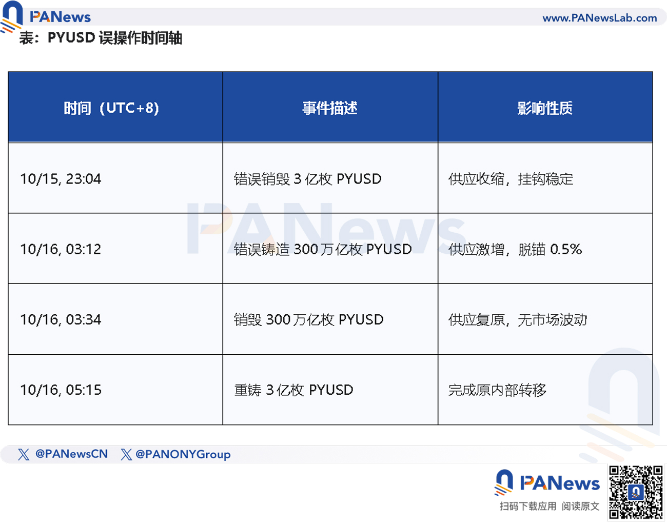 10 月 16 日凌晨,加密貨幣市場出現戲劇性一幕,穩定幣發行機構 Paxos 突然鑄造並銷毀了 300 兆枚 PayPal USD(PYUSD),讓市場一頭霧水。這起「烏龍」事件不僅是單純的人工失誤,更生動地揭示了中心化穩定幣在技術治理與內部控制層面上存在著固有的脆弱性。