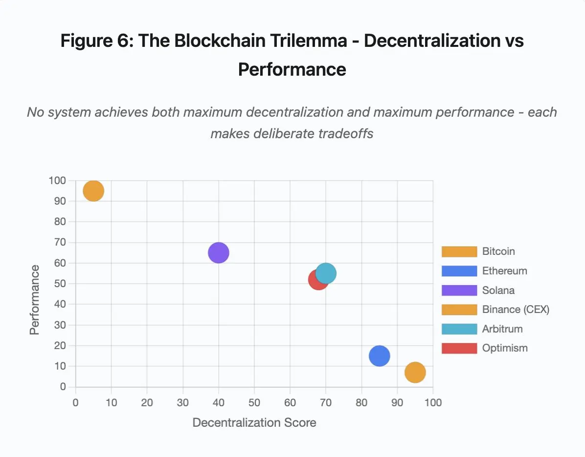核心洞見:沒有系統能同時實現最大程度的去中心化和最高性能。每種設計都為不同的用例做出了刻意的權衡。