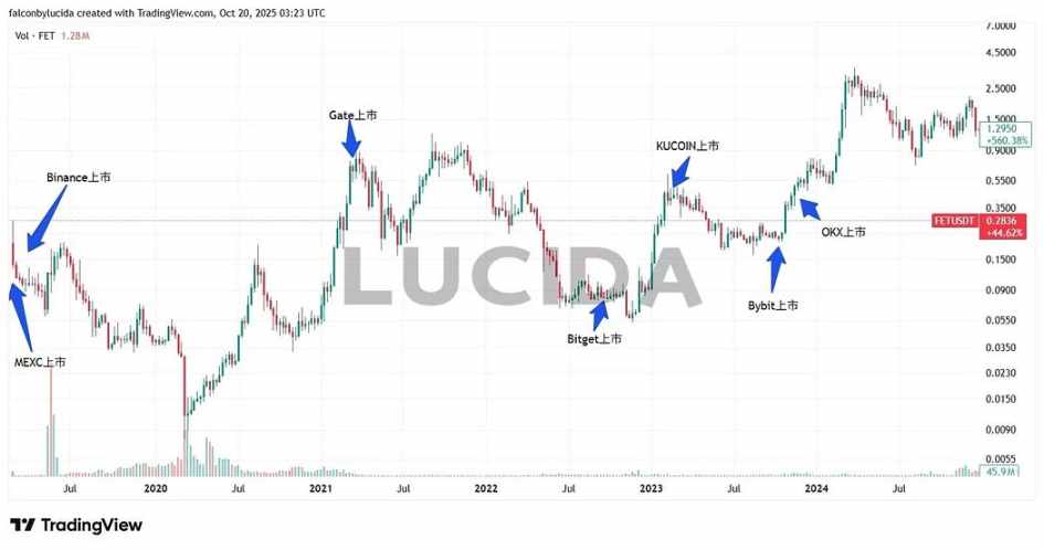 AI 與基礎建設項目的技術門檻高,價值釋放週期長,各交易所呈現出清晰的「梯度上幣」特徵。 Binance 是 AI 專案(如 FET)的首選首發地,其 Alpha 平台和 IDO 頻道對 AI 賽道有明顯的偏好。 Bitget 和 Bybit 善於在專案經歷首次調整後的低位平台期上線,為錯過首發的投資者提供二次上車機會。