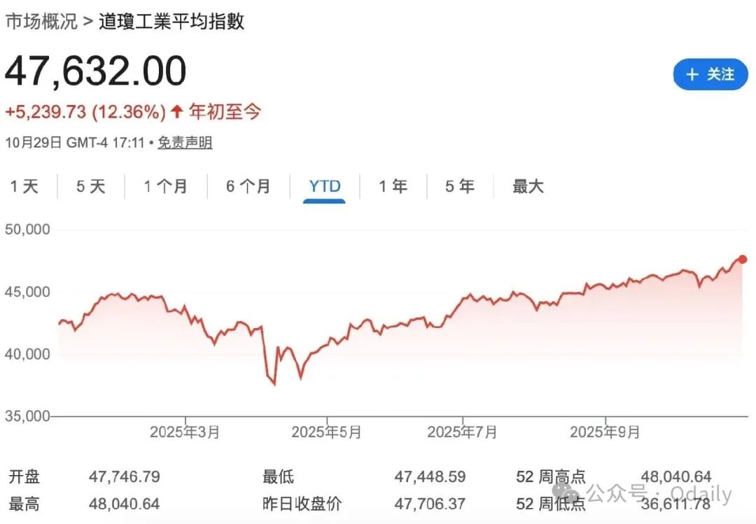 從下方的對比圖來看,我們能清楚地看到,相較於 BTC 目前約為 17% 的漲幅,黃金超 50% 的漲幅更為可觀;與之相對,儘管道指漲幅不及 BTC 漲幅,但就在昨晚,道瓊斯指數向上觸及 48000 點,再創記錄新高;相較於 BTC 從超 125000 美元價格跌至現在 111000 美元左右的價格,無疑表現更佳。