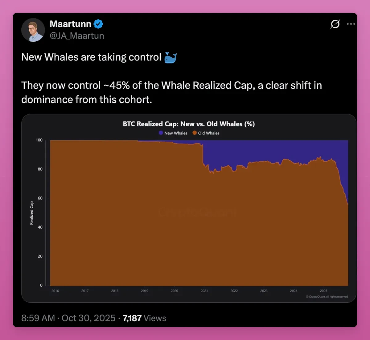 - 這並非恐慌性拋售,而是從巨鯨集中持有向所有人分散持有的自然過渡;