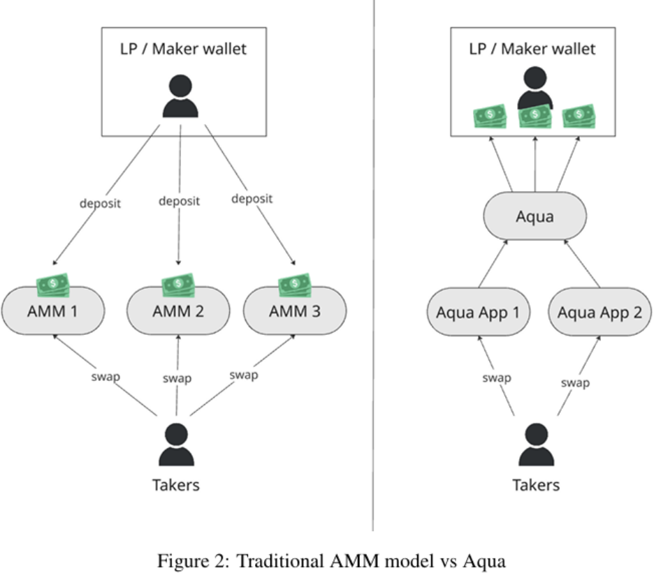 在 Aqua 出現之前,主流的 AMM(自動做市商)模型廣泛採用「池化託管」設計,也就是要求 LP(流動性提供者)將他們的資產存入並鎖定在協議中,但是這種設計造成了兩個結構性低效的問題: