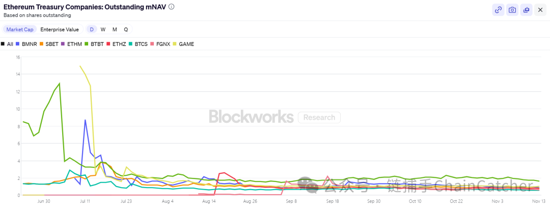 與此形成對比的是,一些中小儲備公司正被迫收縮,ETHZilla 在 10 月底出售約 4 萬枚 ETH 用以回購股票,試圖透過出售部分 ETH 來縮小折價區間、穩定股價。