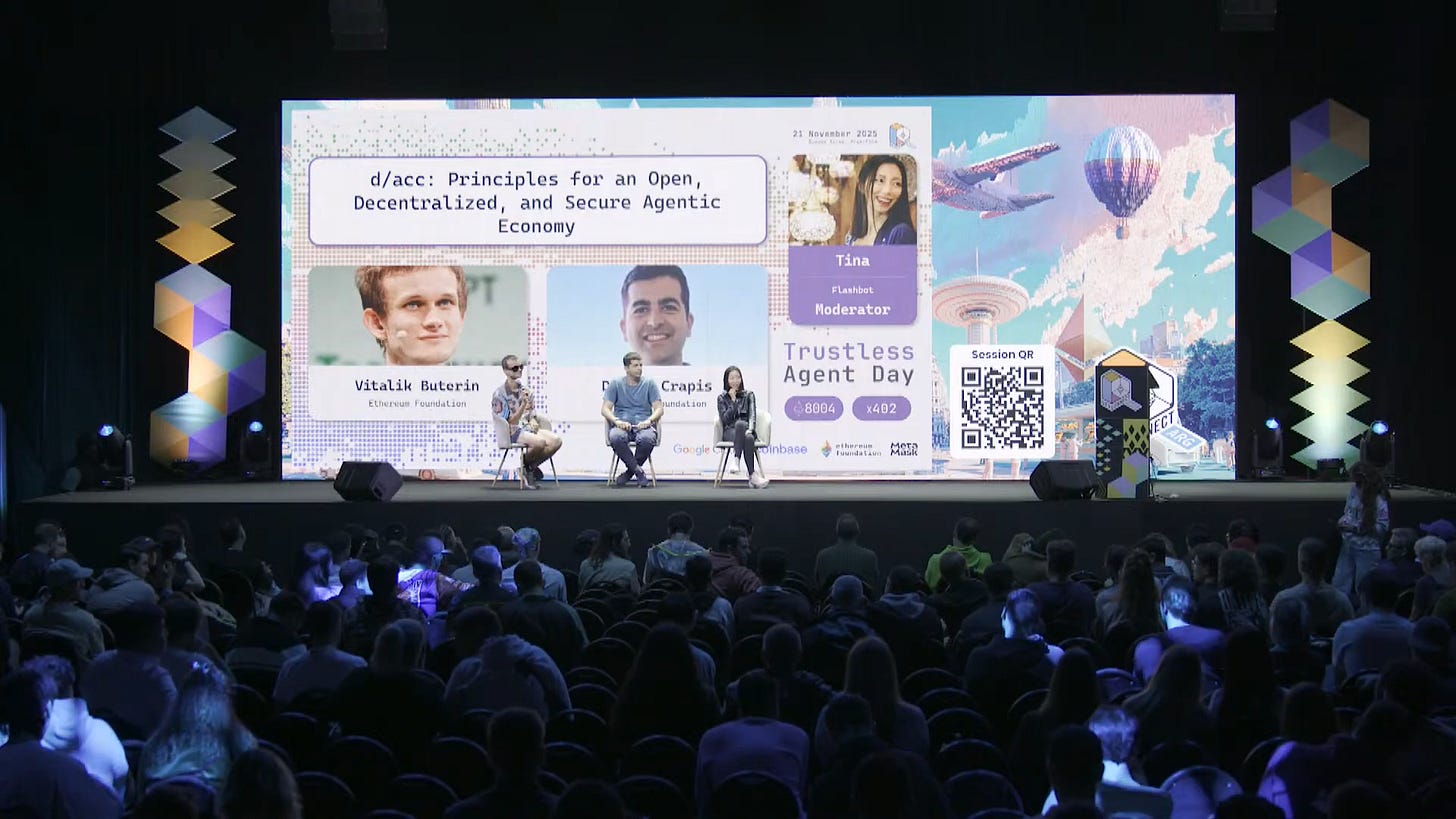 在以太坊 Devconnect 期間,一場名為 Trustless Agent Day 的活動聚集了當前 Web3 與 AI 交叉領域最前沿的思考者。這場壓軸 Panel 由 Flashbots 的 Tina 主持,核心嘉賓是以太坊共同創辦人 Vitalik Buterin 和以太坊基金會 dAI 團隊負責人 Davide Crapis 。