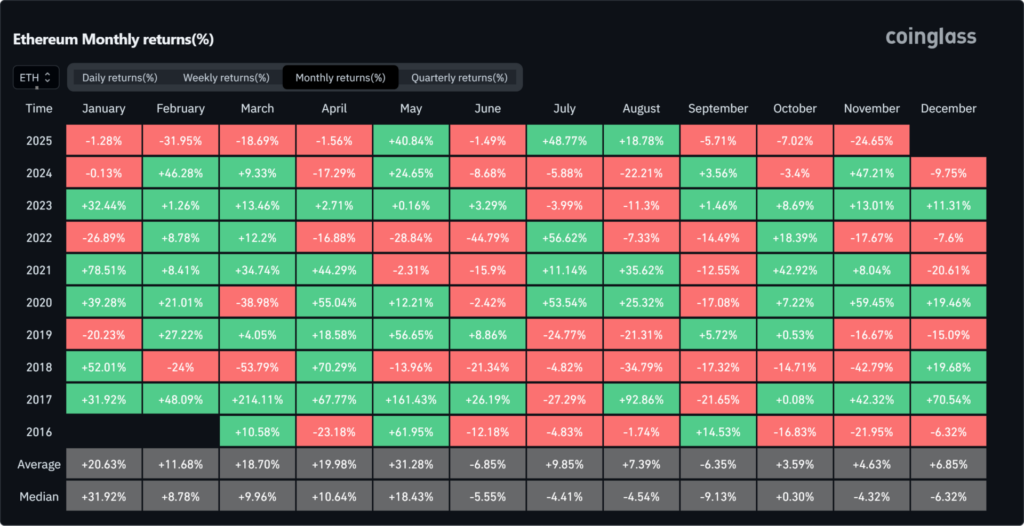 但觀察近年數據,ETH 在一月的表現,從 2022 年之後已經變差,在 2023 年 NFT 熱潮時有過 32% 的漲幅,但已經不如 2021 DeFi 熱潮時的瘋狂。從現在價位約 2,900 美元,就算以 2021 年一月漲幅 78% 來算,頂多也是 $5,100 美元左右,有甚麼因素或敘事可以讓 ETH 漲這麼多?目前很難想像到。