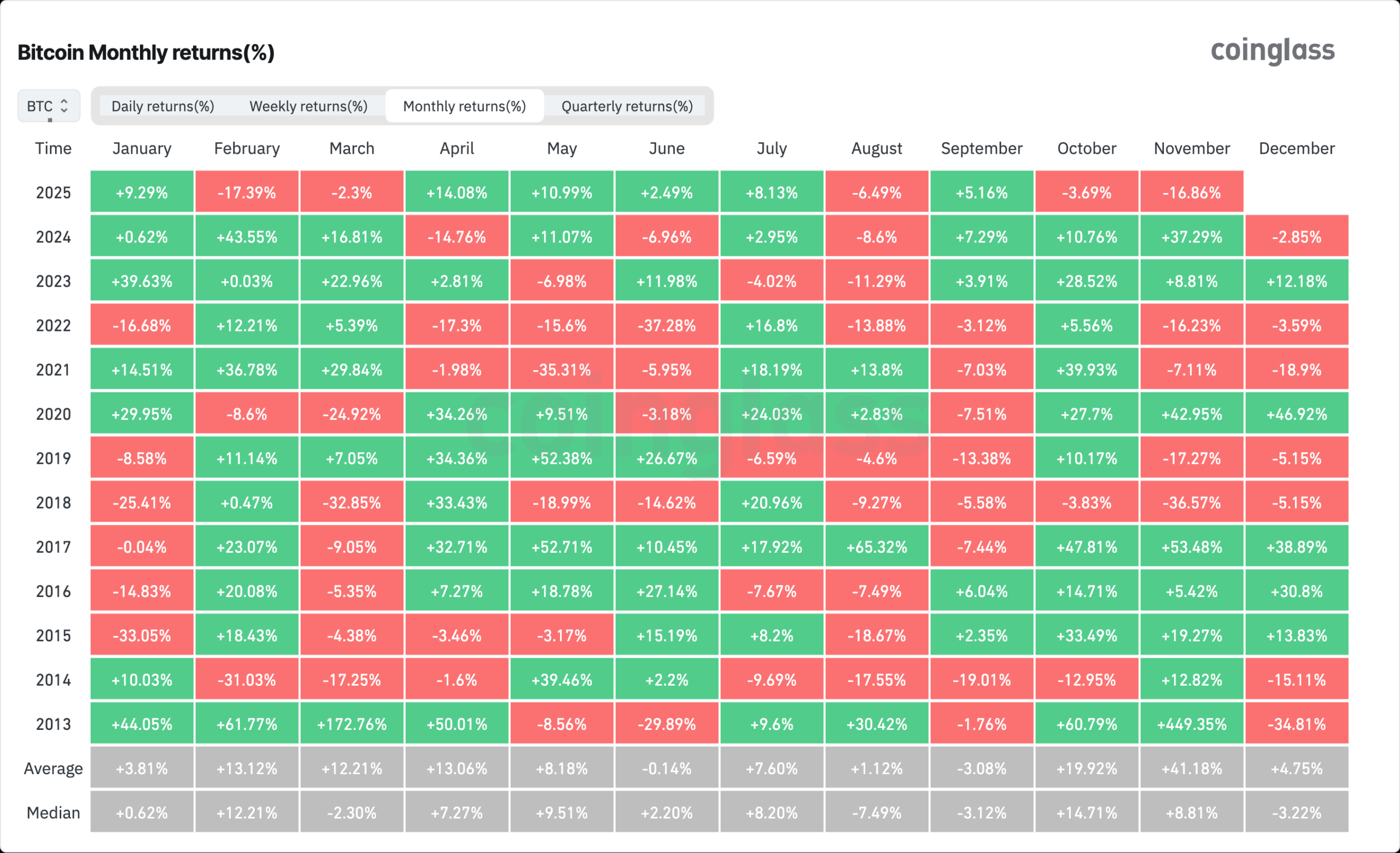 他同時警告,過去的市場經驗顯示,每當比特幣在 11 月收跌,12 月的表現往往也不會太亮眼。