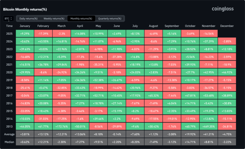 再看 BTC 月度收益率,可以看到從 2017 年開始,很巧地如果 11 月收跌,那 12 月 BTC 的表現也會比較差,通常也會連續兩個月收跌。但由於 12 月接近年底,也有聖誕和新年假期,所以市場波動大多集中在月初頭兩個禮拜的時間,踏入冬至過後市場會較為平靜,而傳統市場會趁著這個「聖誕行情」出貨避險,所以也要注意倉位佈局。