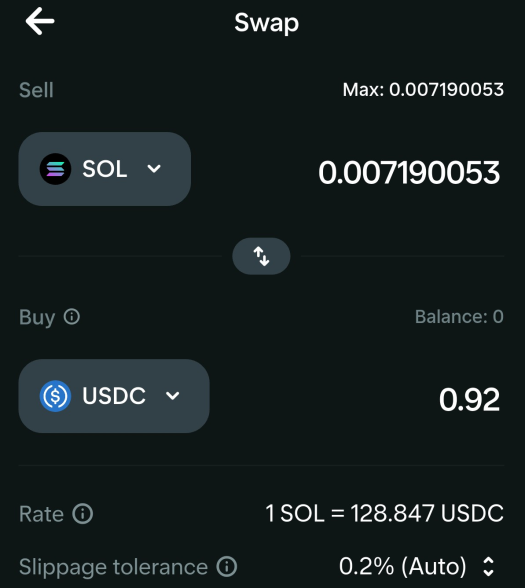 低成本交易: 每天進行小額的兌換(例如將 0.001 SOL 兌換為 USDC)。為了節省費用,建議使用 Jupiter 網頁版或 Jupiter 皮夾擴充功能。