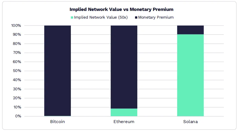 而 Solana 產生了 14 億美元的收入,證明其估值 90% 來自網路效用。