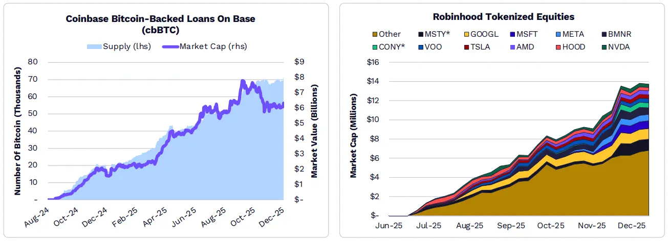 傳統企業正在建構其自有的鏈上基礎設施。 Circle(Arc)、 Coinbase(Base,cbBTC)、 Kraken(Ink)、 OKX(X Layer)、 Robinhood(Robinhood Chain)和 Stripe(Tempo)正在推出公司自有品牌的 L1/L2 網絡,以支援其自身產品,例如比特幣抵押貸款、代幣化股票和 ETF,以及基於穩定幣的支付管道。