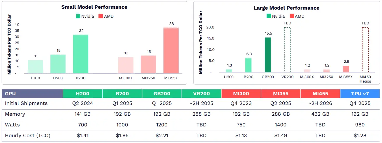 NVIDIA 早期在 AI 晶片設計、軟體和網路方面的投資,使其圖形處理器(GPU)的市佔率達到 85%,毛利率達到 75% 。如今,像 AMD 和谷歌這樣的競爭對手在某些領域,如小型語言模型推理方面已經迎頭趕上。 NVIDIA 的 Grace Blackwell 機架式系統在大型模型推理方面處於領先地位,為最先進的基礎模型提供支援。