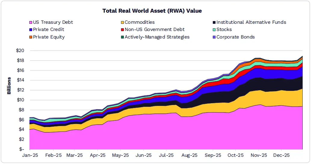 在以美國國債和大宗商品為主導的推動下,代幣化資產市場在2025年成長了兩倍,達到190億美元。