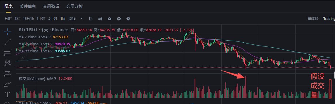 比特幣這位置基本上是奔著破位走了,8 萬以下可以做一個波段,反彈 1-2 週的樣子,但是高度不會太高,可能也就是 6-10% 的樣子,如果最低插到 77000-78000,那反彈回來跟現在價格差不多,所以只能熬著了,今天的量能按照日線比例大概不會高於 11 月 21 日那天,所以破了新低直接下去的機率是不大的(這是可以做波段反彈的邏輯),反彈後很可能繼續向下尋底,現在還不好說,要觀察抄底資金的力量,如果還像現在這樣軟綿綿的,那大概率還不是最終的底部。