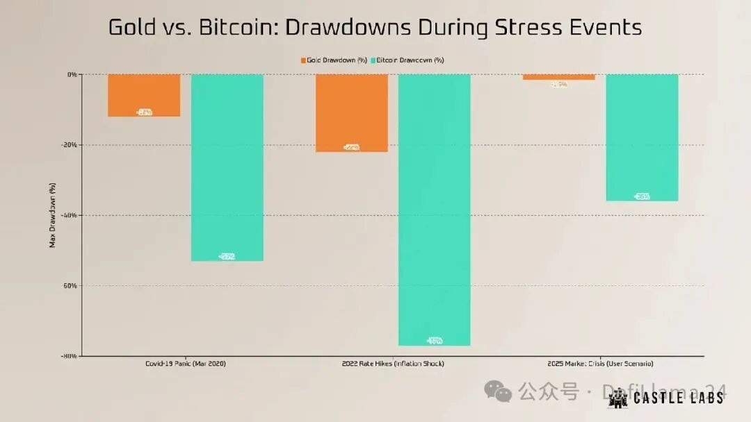 反之,比特幣自然地被散戶和機構利用槓桿來捕捉日內波動。確實,相較於實物形態呈惰性的大宗商品,去撬動一種由動態流動性決定方向的資產要容易得多。儘管投資者相信抗通膨敘事,但比特幣的表現卻像一種不成熟的資產,其特徵是高波動性和不可預測的價格震盪。人們對儲備資產所期望的表現與比特幣的實際表現並不相符。各種穩定幣的脫錨恐慌提醒了我們:如果你不能實際持有它,你就不算真正擁有它。