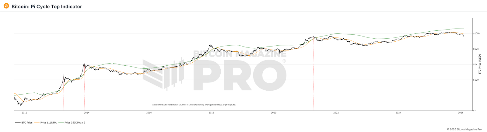 Pi Cycle Top:波動率下降使均線交叉失去條件