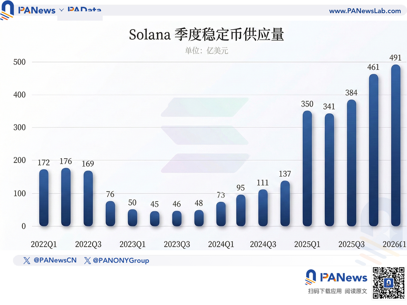 Solana 穩定幣供應量的成長軌跡是一條歷經 4 年從谷底到巔峰的陡峭曲線。