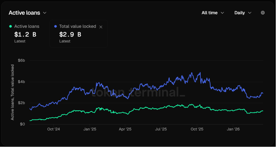 Kamino 作為 Solana 上最大的借貸平台,其鎖倉量(TVL)已觸及 29 億美元,活躍貸款規模也達 12 億美元。 Kamino 推出的生息流動性代幣 kTokens 讓用戶能夠在賺取手續費的同時,將這類憑證作為抵押品再次借出穩定幣,大幅提高了資金的使用效率。