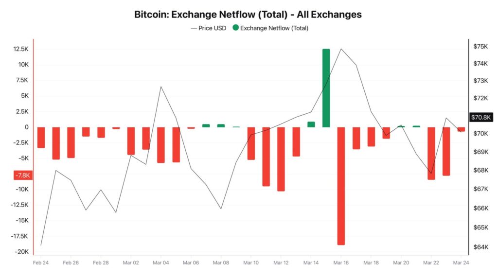 從價格來看,撰文時幣安數據,比特幣目前報約 71,111 美元,24 小時高低區間介於 68,923 美元至 71,400 美元,顯示 BTC 在重返 7 萬美元上方後,仍維持震盪偏強格局。若交易所淨流出持續,而價格又能守穩 7 萬美元整數位,市場對「有資金在低位吸納」的解讀將進一步增強。