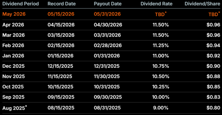 這一天,Strategy 宣布維持 11.5% 的股利不變,但終止了連續七個月的月加息慣例。